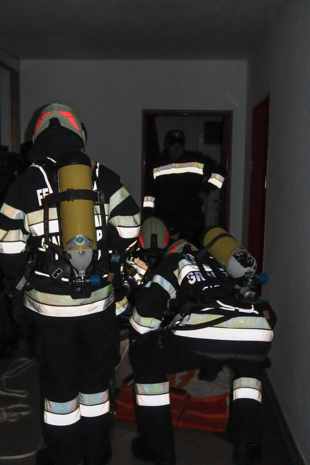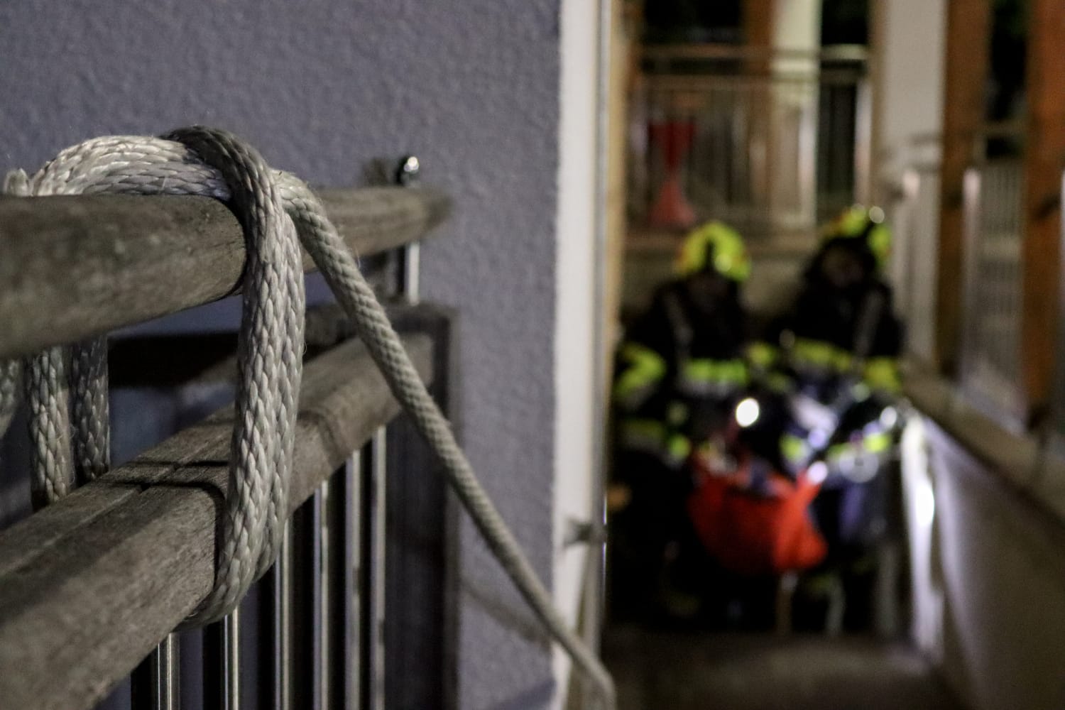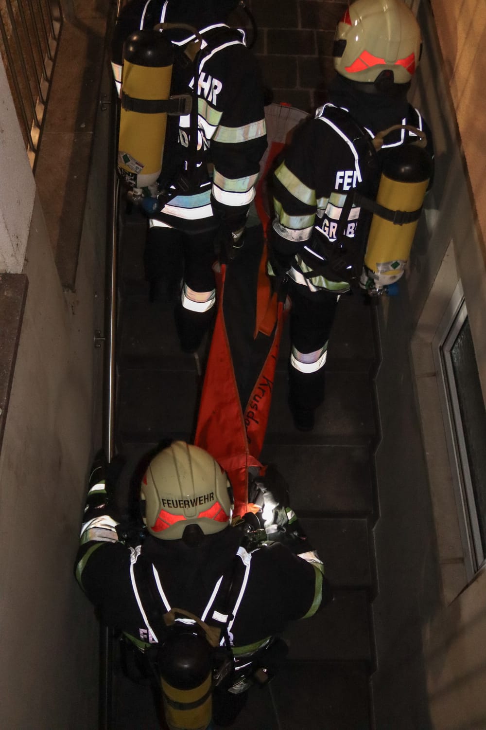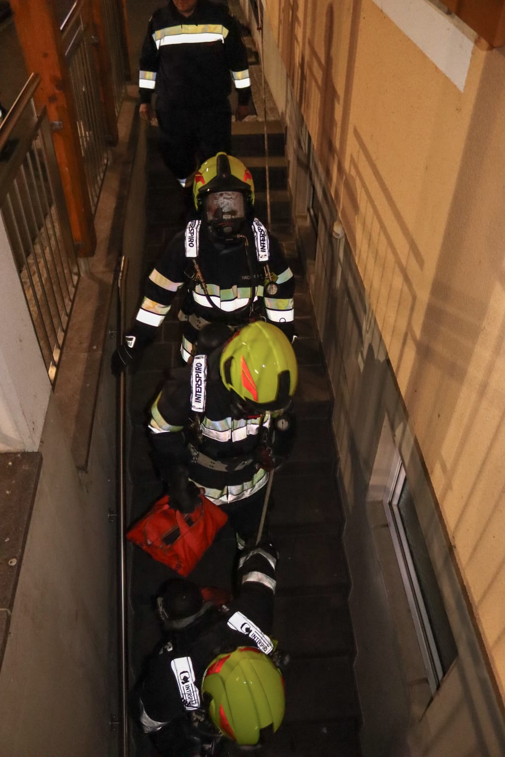 In den Umkleideräumlichkeiten des Sporthauses galten zwei Personen als vermisst. Die Atemschutztrupps mussten die vollständig abgedunkelten Räume unter Nullsichtbedingungen absuchen.