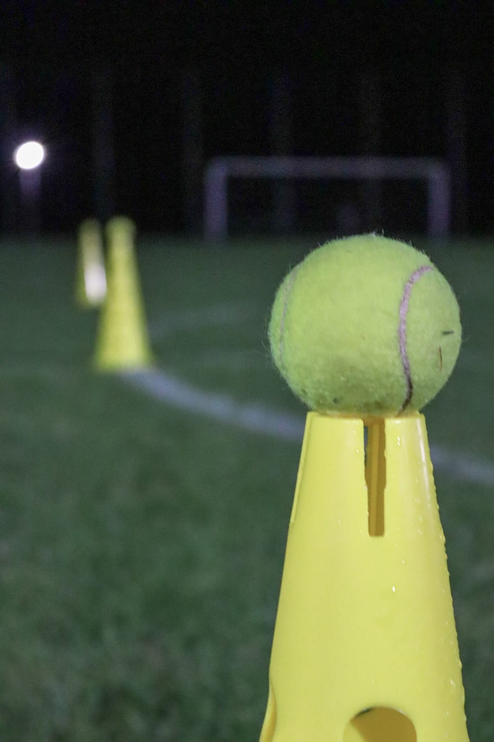 Im Anschluss waren drei Tennisbälle mit dem HD-Rohr von einer Vorrichtung herunterzuspritzen